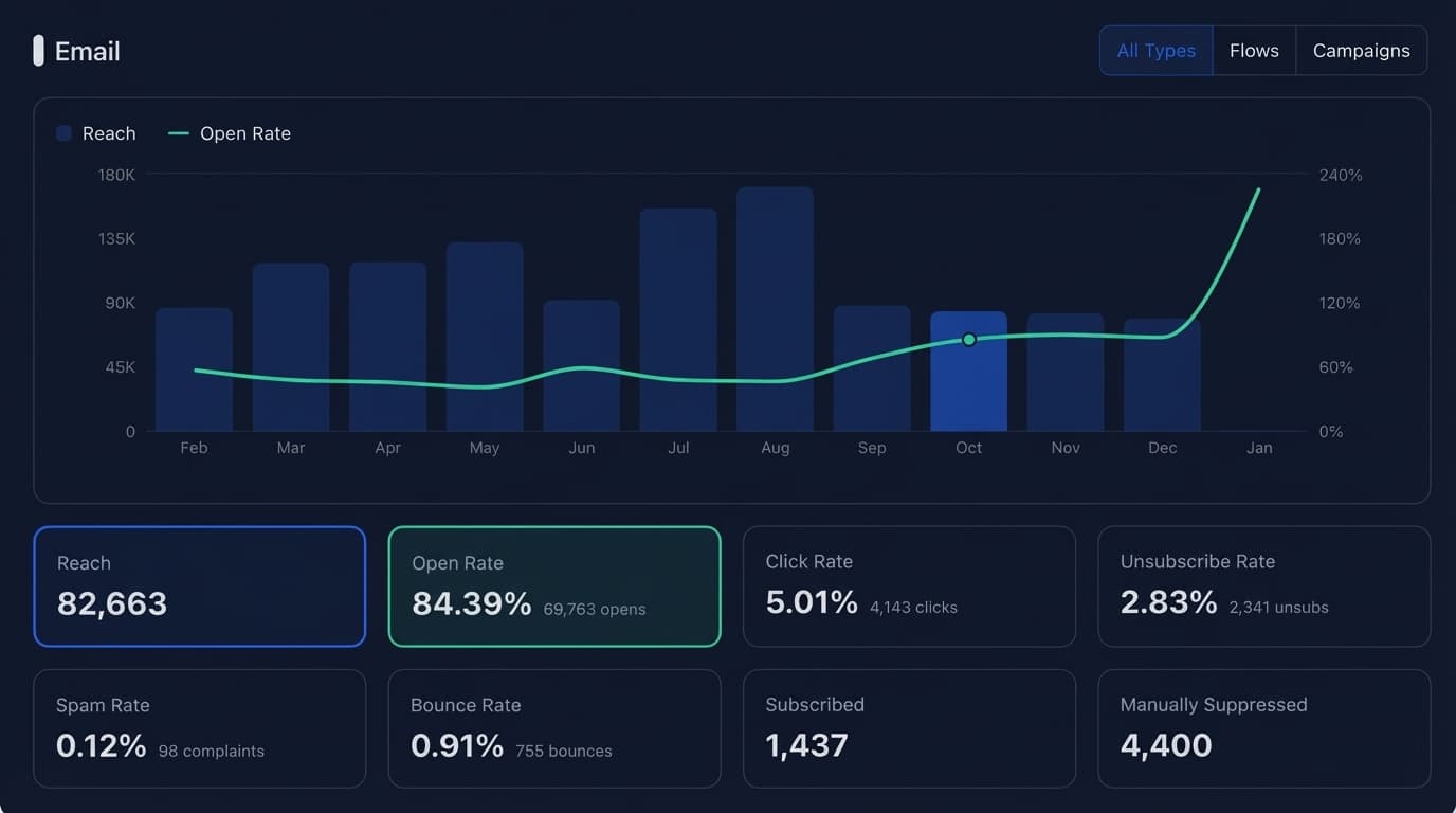 Don’t confuse “more emails” with “more impact.” Track reach + engagement rates and watch unsub/spam trends to spot saturation early.